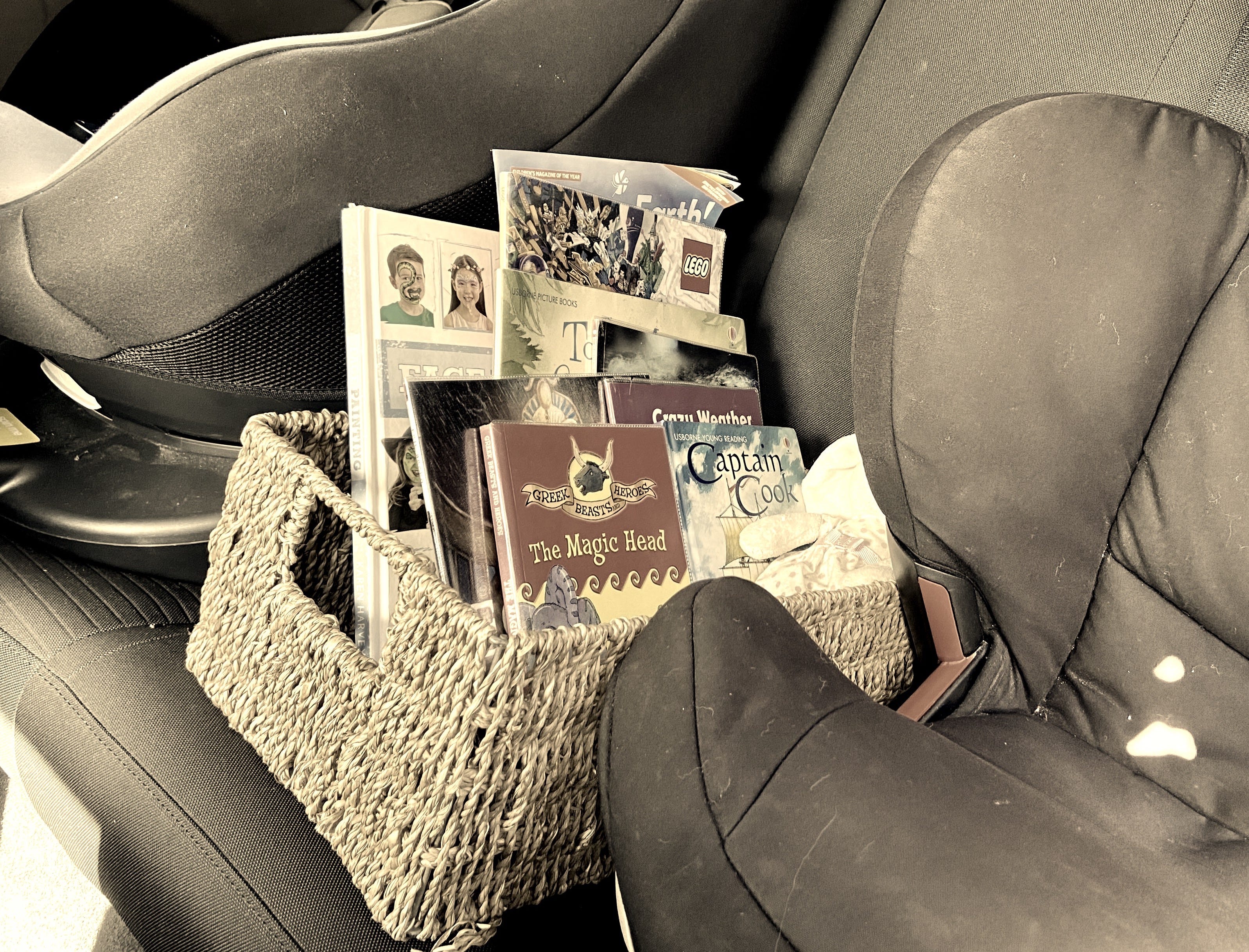 Interestingly, this works far better than leaving books lying around at home. Something about the car space means she actually dips in, looks, wonders, and asks questions later. A small change with a big impact.